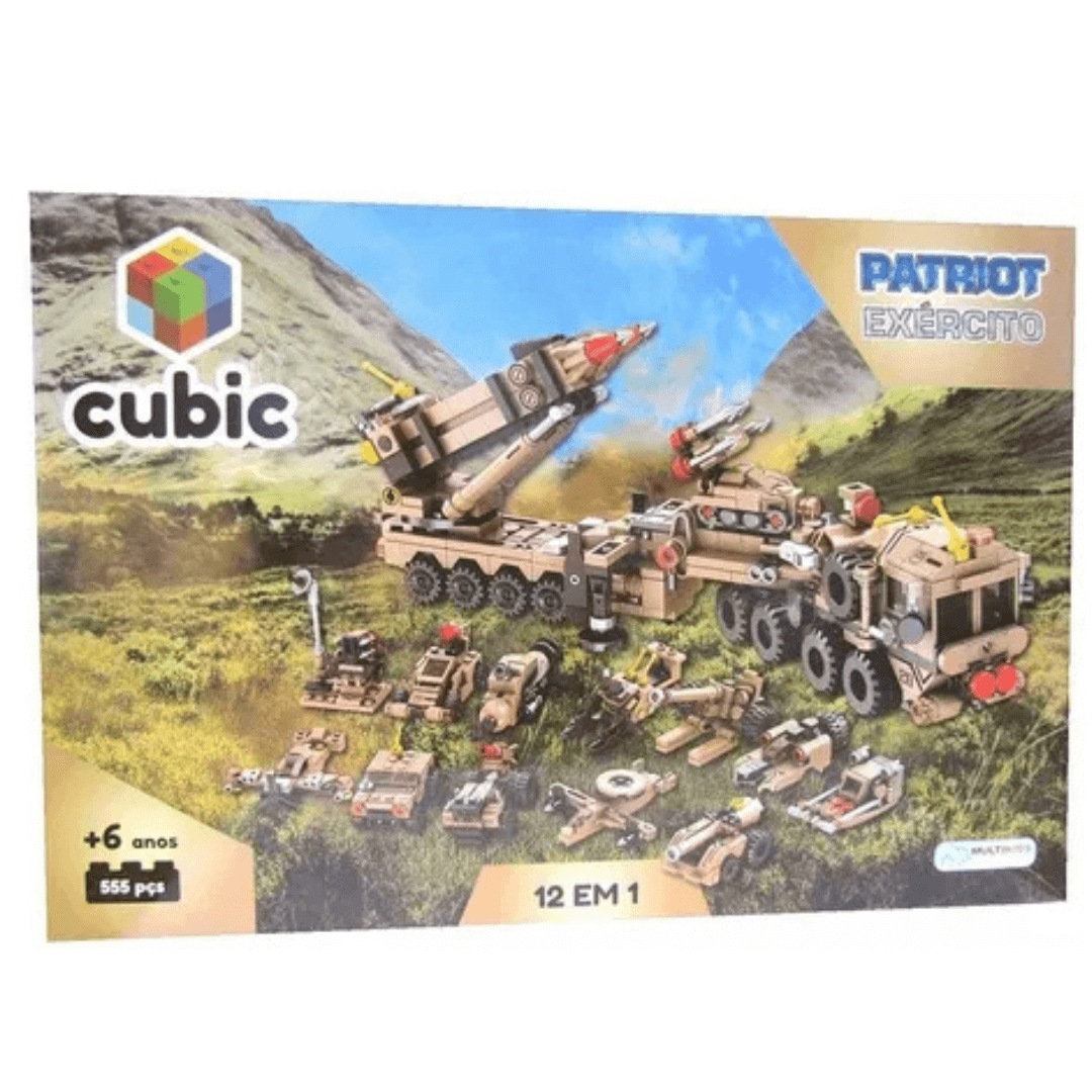 Blocos De Montar Cubic Exercito Patriot 12 Em 1 555 Peças BR1096 Multilaser.