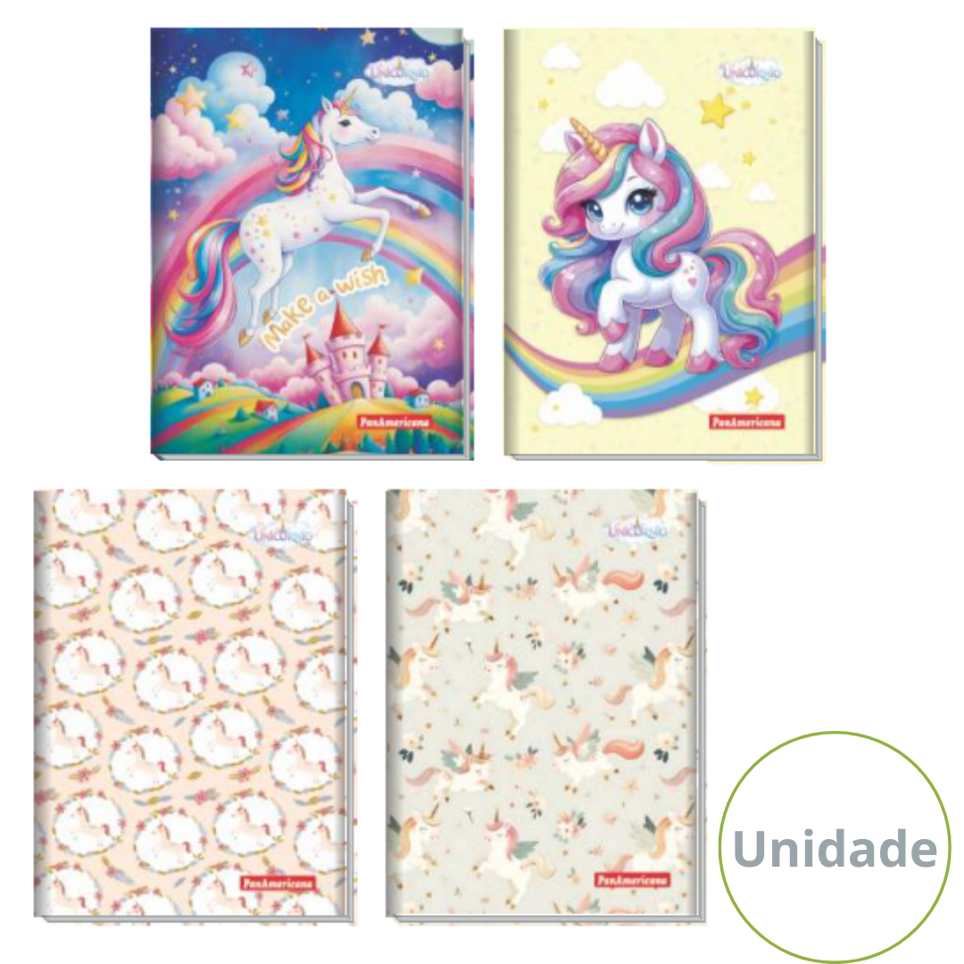 Caderno Brochura Capa Dura Unicórnio 80 Folhas Panamericana.