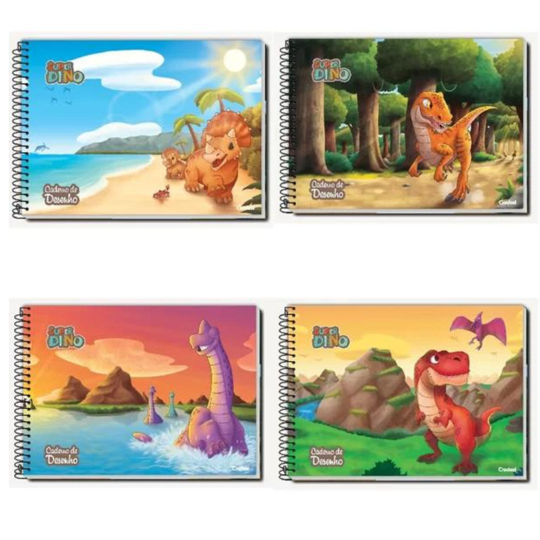 Caderno De Desenho Espiral Capa Dura Super Dino 80 Folhas Credeal.