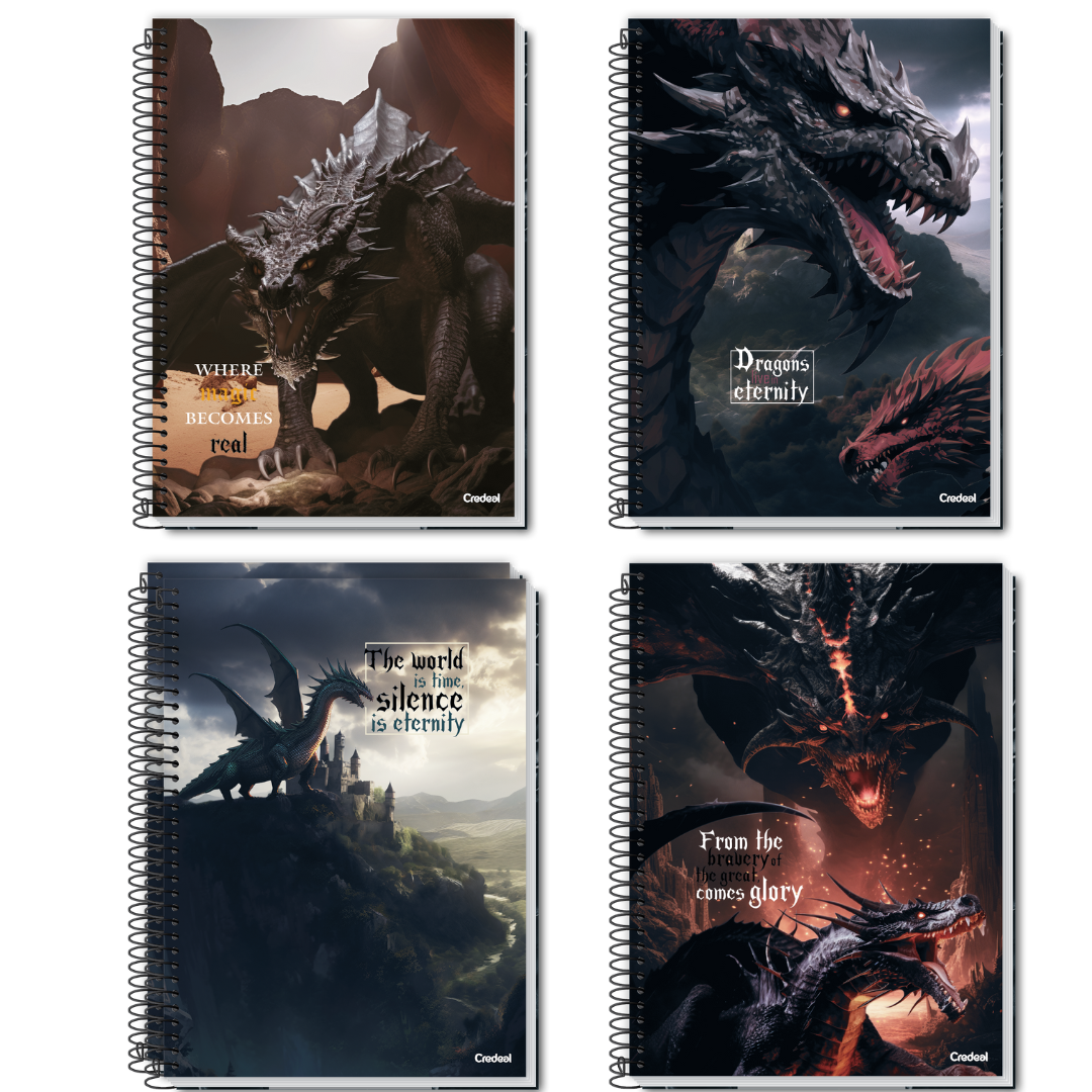Caderno Espiral Capa Dura Aventura Com Dragões 80 Folhas Credeal.