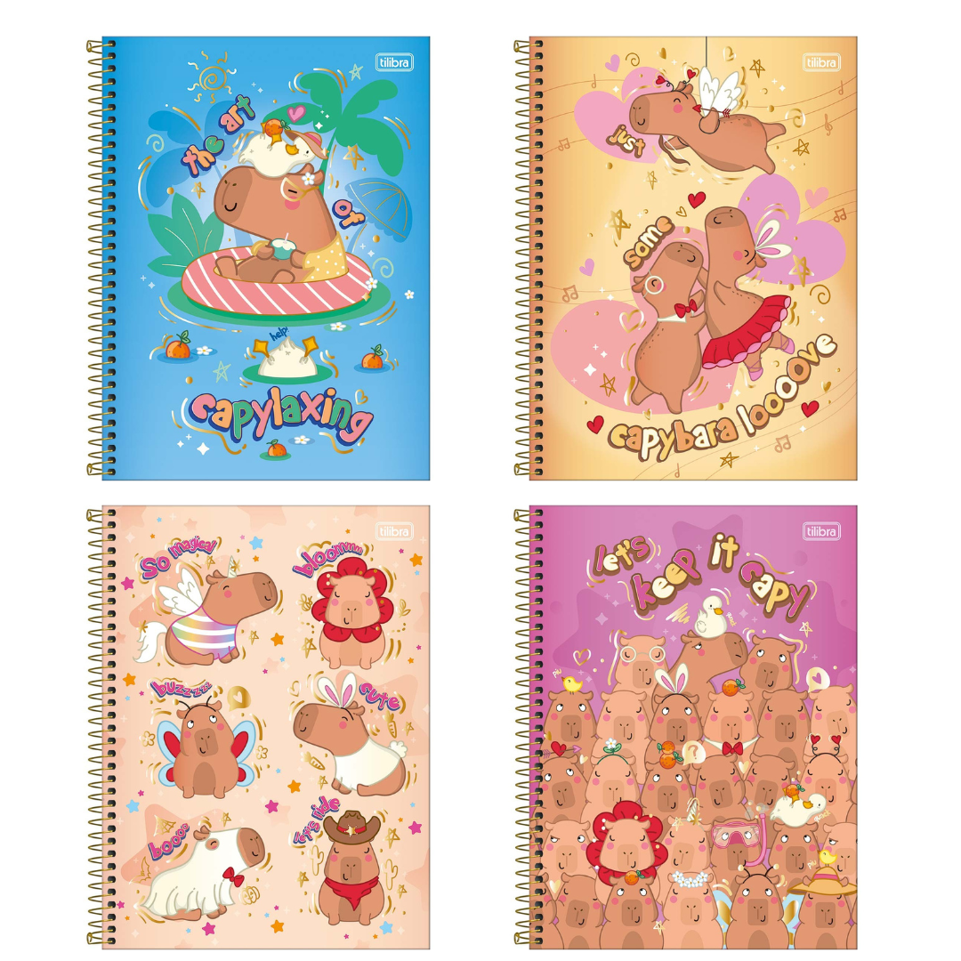 O Caderno Espiral Capa Dura Universitário 1 Matéria Capyclub 80 Folhas da Tilibra é perfeito para você que busca uma opção para organização da rotina de estudos com ilustrações divertidas de capivara.