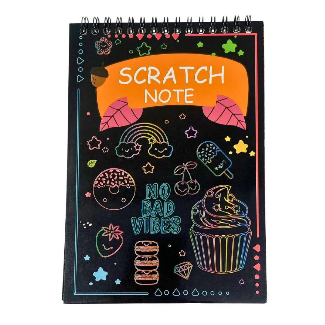 Permite que você desenhe com o bastão, já incluído no produto, arranhando a superfície e fazendo com que a criatividade apareça no papel.