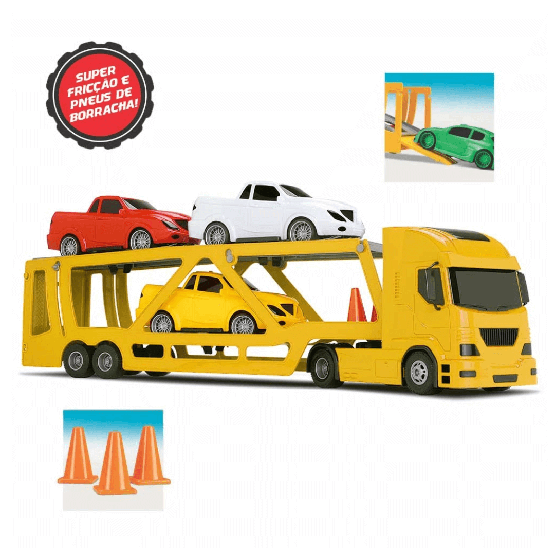 Conteúdo da Embalagem: 1 Caminhão Cegonheira Pollux 30-360 e 3 carrinhos.