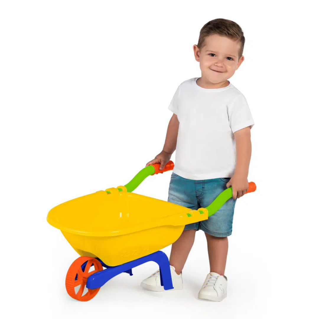 Com o carrinho de mão os pequeninos podem levar brinquedos ou pequenos acessórios.