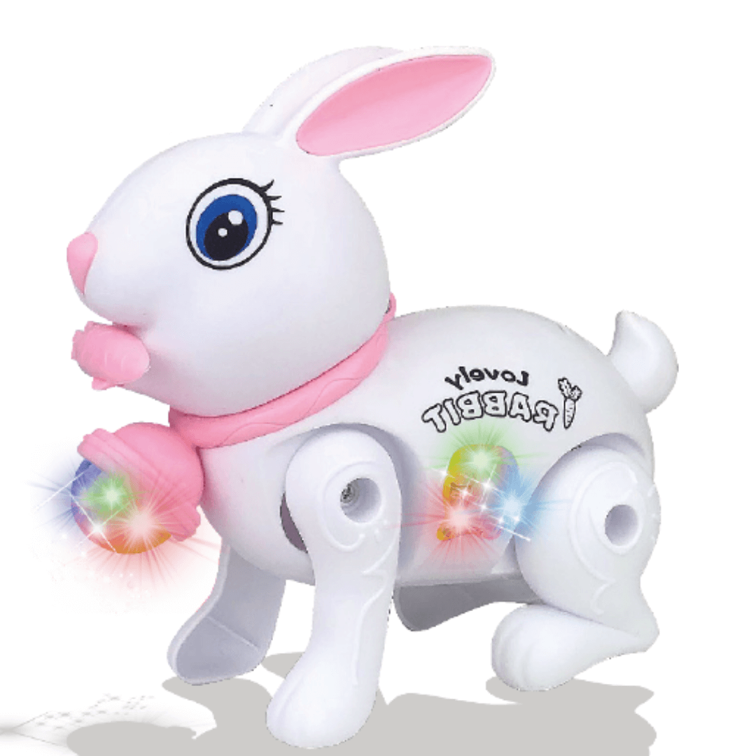 Você vai adorar este lindo Coelho Musical, ele é super fofo, com luzes coloridas, anda e toca uma linda melodia.