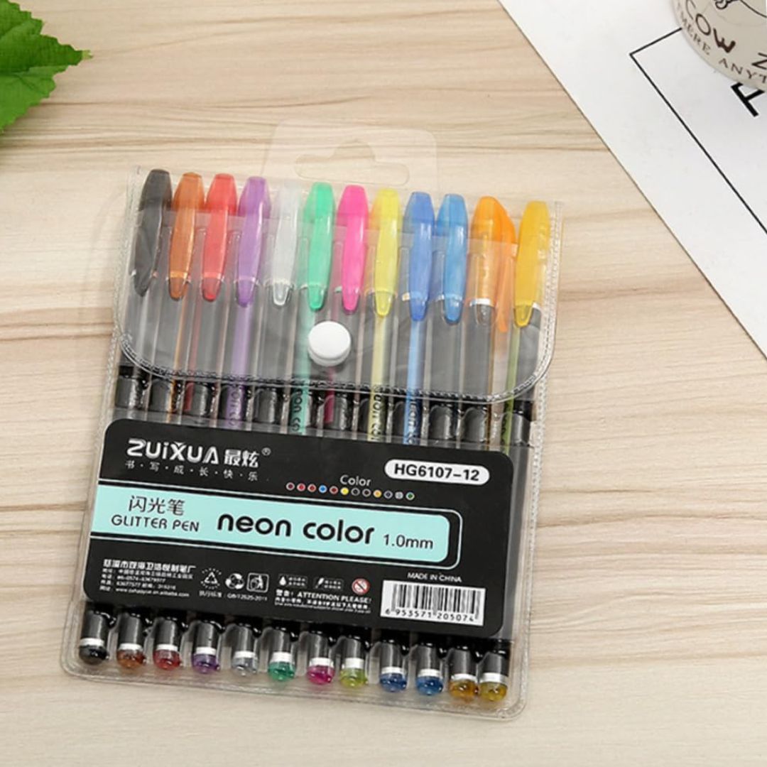 Estojo Caneta Gel Glitter Pen 1.0mm Com 12 Cores Neon Zuixua
