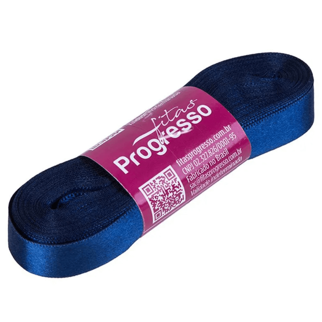 Este modelo de fita da Progresso tem a cor azul marinho, feita de cetim.