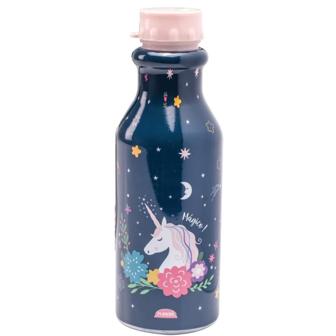 Garrafa Plastica Retro Unicórnio 500ml Plasútil.