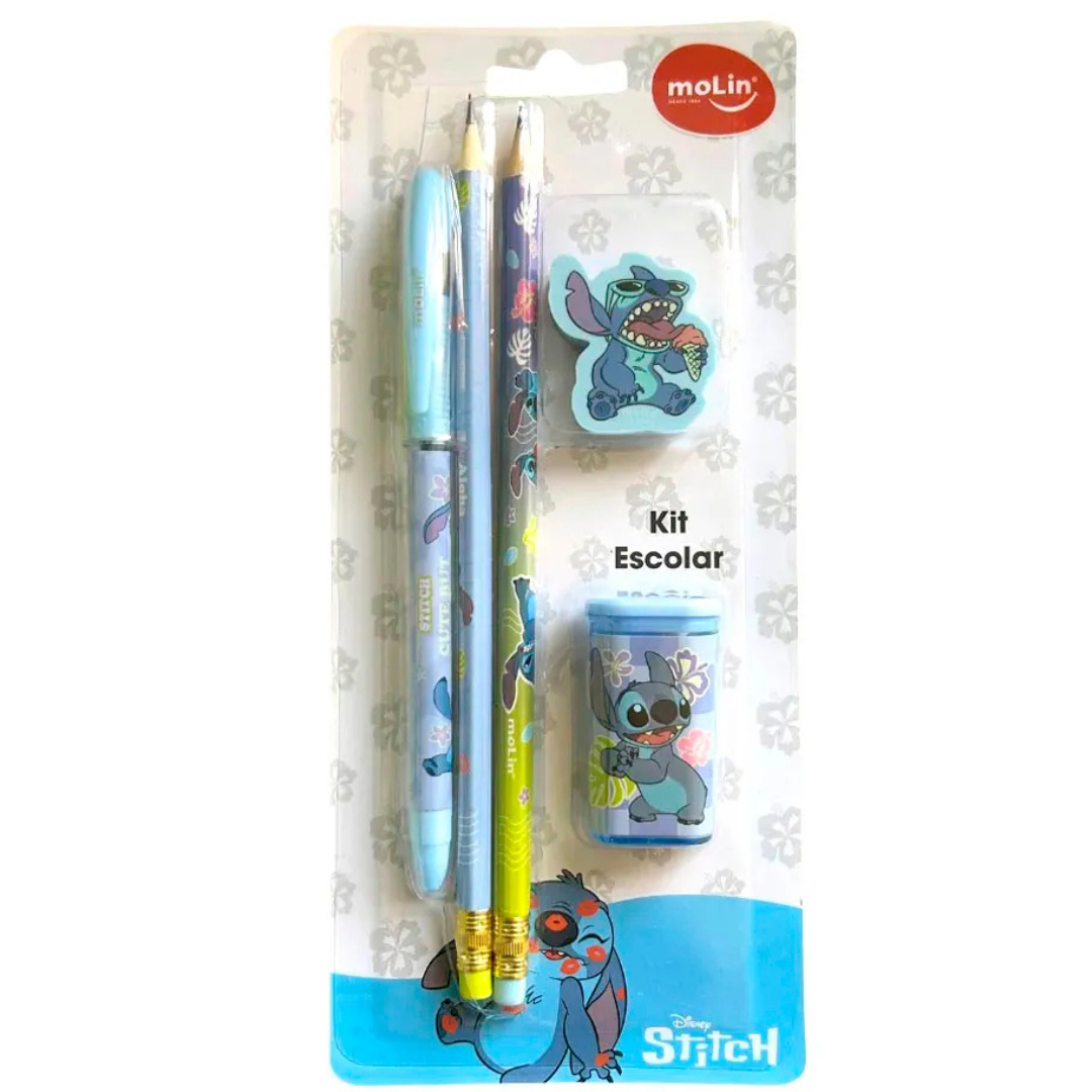 Kit Escolar Lápis Caneta Apontador E Borracha Stitch 31315 Molin.