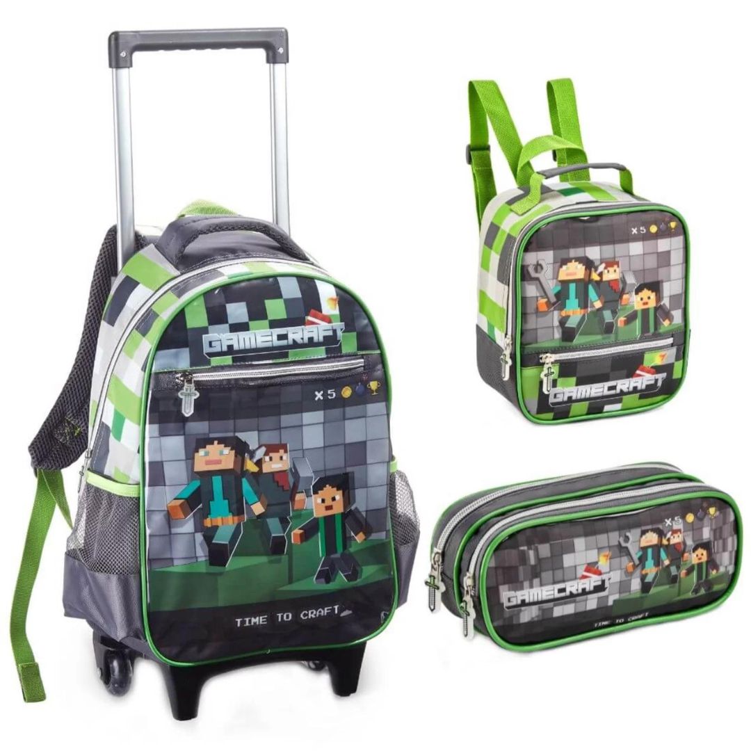 Kit Mochila De Rodinhas Lancheira E Estojo Gamecraft Seanite