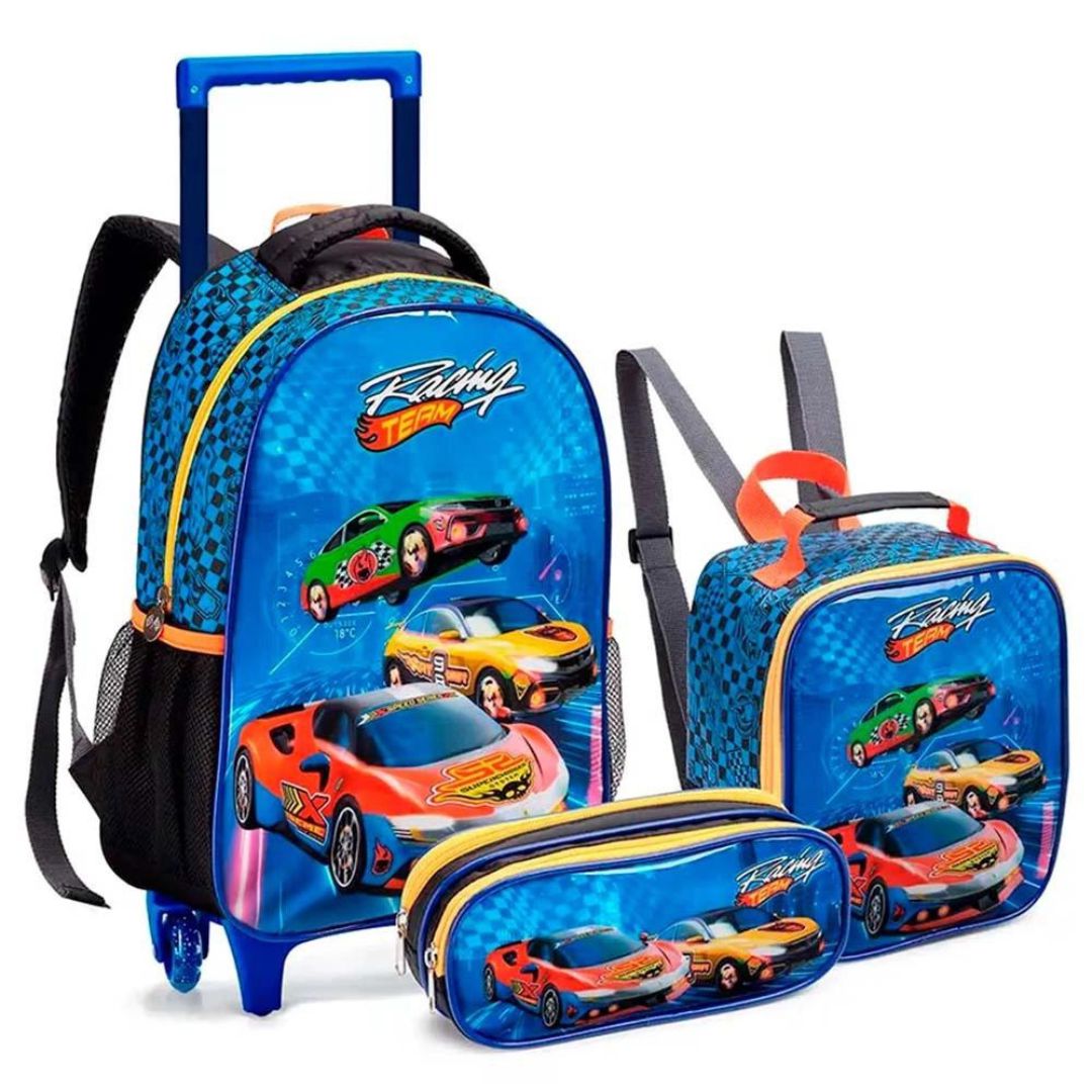 Kit Mochila De Rodinhas Lancheira E Estojo Racing Term Seanite.