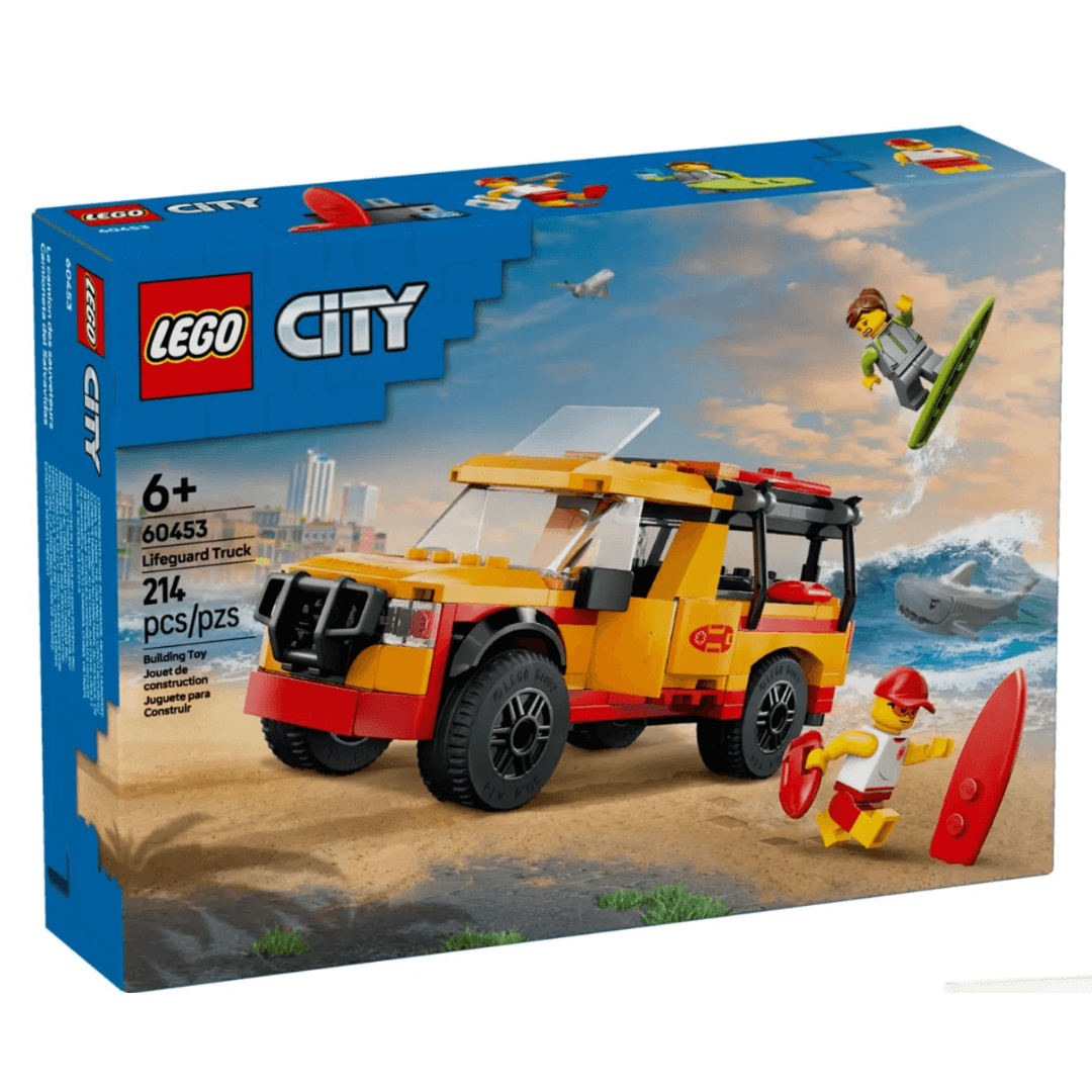 As aventuras de resgate na praia estão no horizonte com o conjunto de brinquedos LEGO® City Lifeguard Beach Rescue Truck (60453) para crianças de 6 anos ou mais.