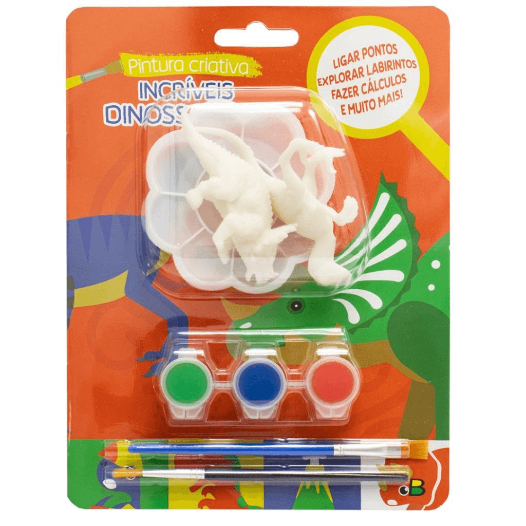 Acompanha 2 mini dinossauros que podem ser pintados com tinta.