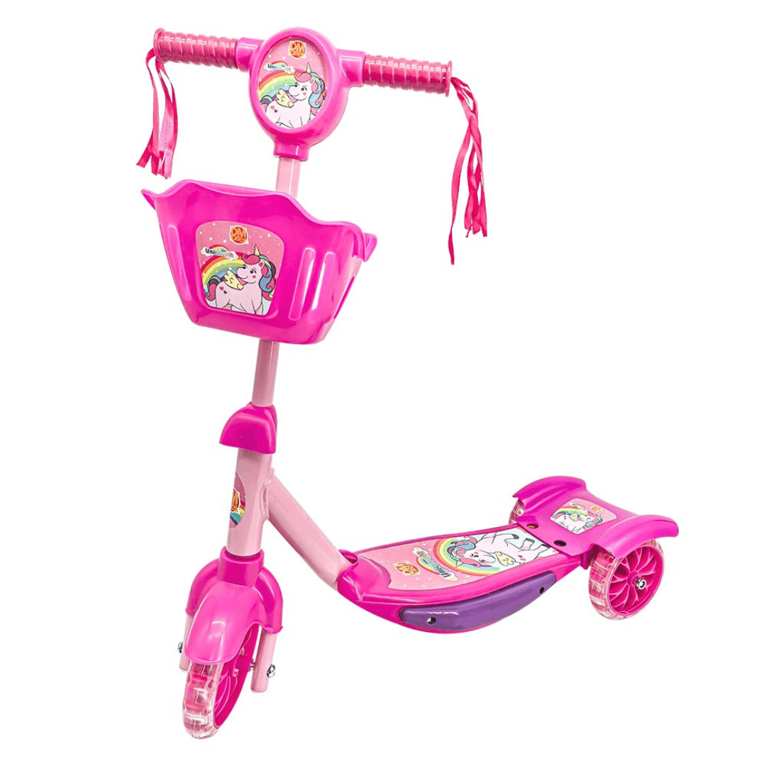 Patinete com cestinha e com lindo desenho exclusivo DM TOYS de Unicórnio.