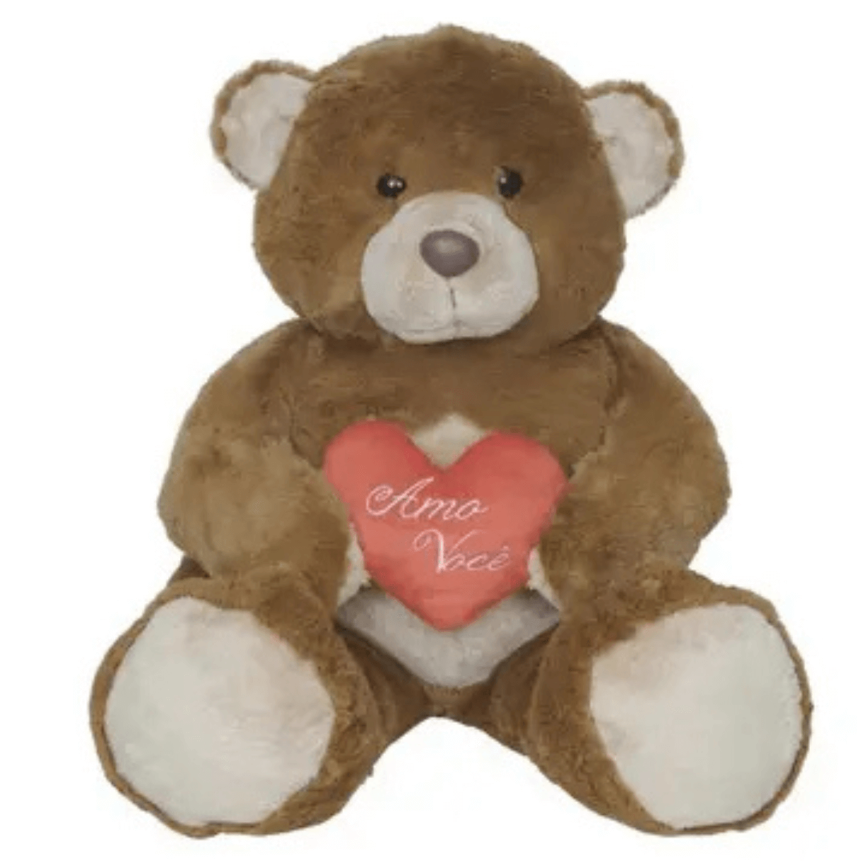 Urso de Pelúcia Bear Love segurando coração com os dizeres "Eu te Amo".