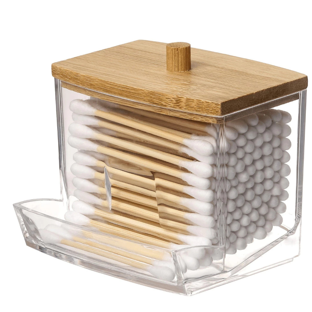 Conteúdo da embalagem: 1 Porta Cotonete De Acrilico E Tampa De Bambu.