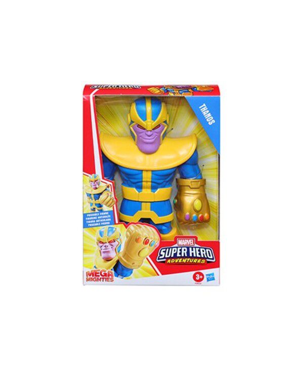 É hora de entrar em ação e muitas aventuras com as figuras Marvel Super Hero Adventures Mega Mighties. No tamanho perfeito para pequenas mãos, estas figuras de quase 30 cm permitem aos jovens heróis se divertirem facilmente. Com 3 pontos de articulação como pescoço, braços e cintura, as crianças acima de 3 anos podem criar diversas posições com a figura do Thanos. Para ainda mais diversão, este brinquedo do Thanos possui uma expressão facial divertida para as crianças. É impossível imaginar-se entrando em ação ao lado do vilão favorito Thanos com este brinquedo.