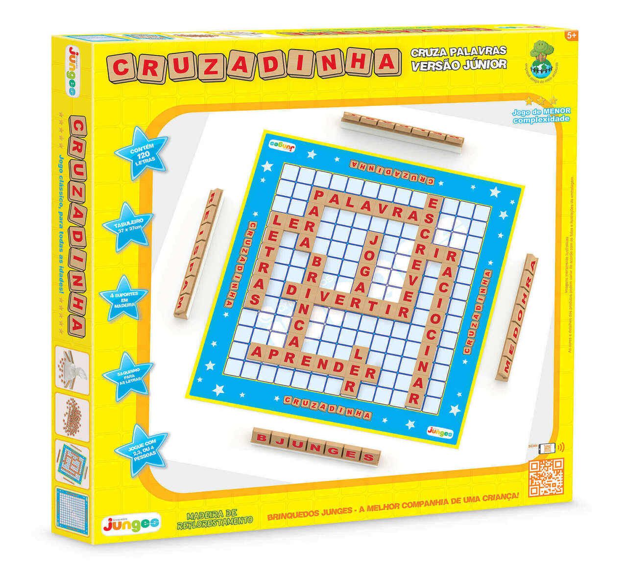 Jogo versão júnior com 120 peças/letras em madeira MDF 6mm -2x2 cm impressas em serigrafia.