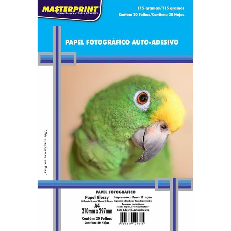 Papel Fotográfico Inkjet A4 Glossy Adesivo 115g 20 Folhas Masterprint.