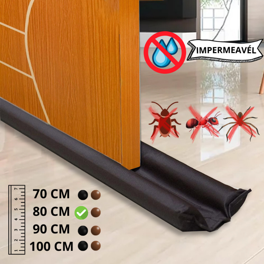 Isolante de temperatura, contribui para a eficiência do ar condicionado ao impedir a fuga de ar frio pelos vãos das portas.