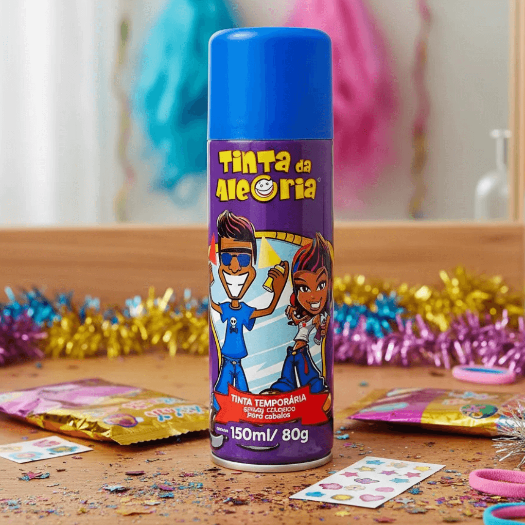 Tinta temporária para adultos e crianças, produto em Spray para maior facilidade de aplicação.